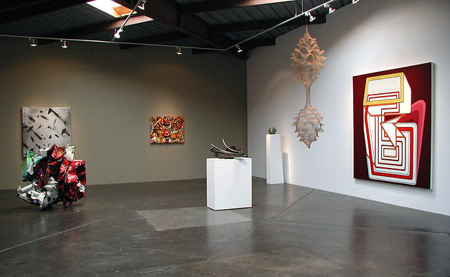 Bart Exposito has recently shown at Daniel Weinberg Gallery in Los Angeles and the Donna Beam Fine Art Gallery of the University of Nevada Las Vegas. Rebecca Morris will be the subject of a one-person exhibition at Chicago’s Renaissance Society in 2005. Michael Reafsnyder has upcoming shows in 2004 at Galerie Marta Cevera (Madrid) and Uplands Gallery (Melbourne). Ruth Root recently exhibited her work at Galerie Marta Cevera (Madrid) and will be the subject of upcoming solo show at Maureen Paley Interim Art (London) in the fall of 2004. Mary Weatherford has been featured in recent exhibitions at Daniel Hug Gallery (Los Angeles) and Debs & Co. (New York).