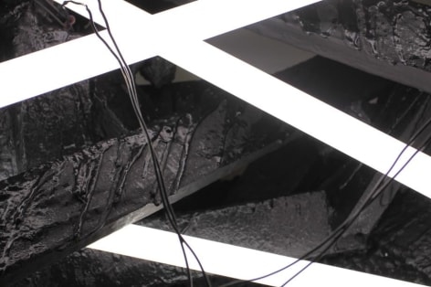 Mark Moore Gallery presents new work by interdisciplinary artist, Preston Daniels, in Gallery Two. Daniels produces works that demonstrate the humanization of architecture. In Over Under, Daniels continues to explore the gestures of architectural destruction and environmental collapse through a series of installations, paintings, and sculptures – all of which employ the use of acrylics, foam, urethane and fluorescent lighting. Over Under refers to a type of shotgun, commonly associated with hunting and sporting. Daniels uses the blunt reality and cultural trope of the shotgun to create an aesthetic bridge between human failures (such as natural disasters, nuclear destruction or war) and their imagined remnants in the form of structural ruins. His interest in taking apart the principals and fundamentals found in architecture - text, images, and structure- is translated in a crude, apocalyptic aftermath, replicating a nightmare where fantasy and reality are blurred.