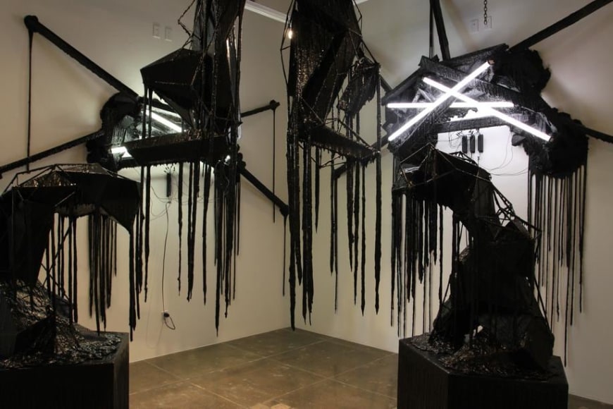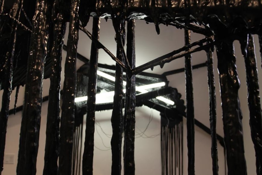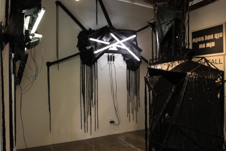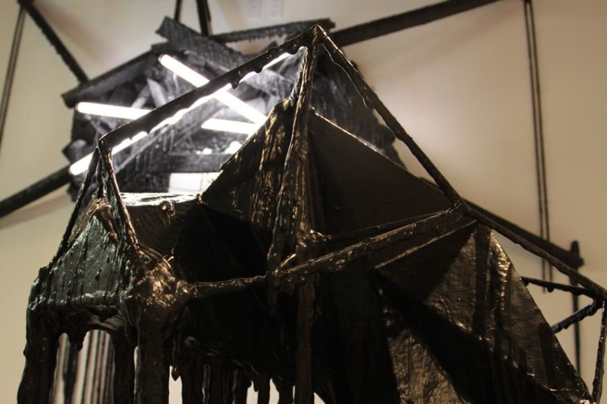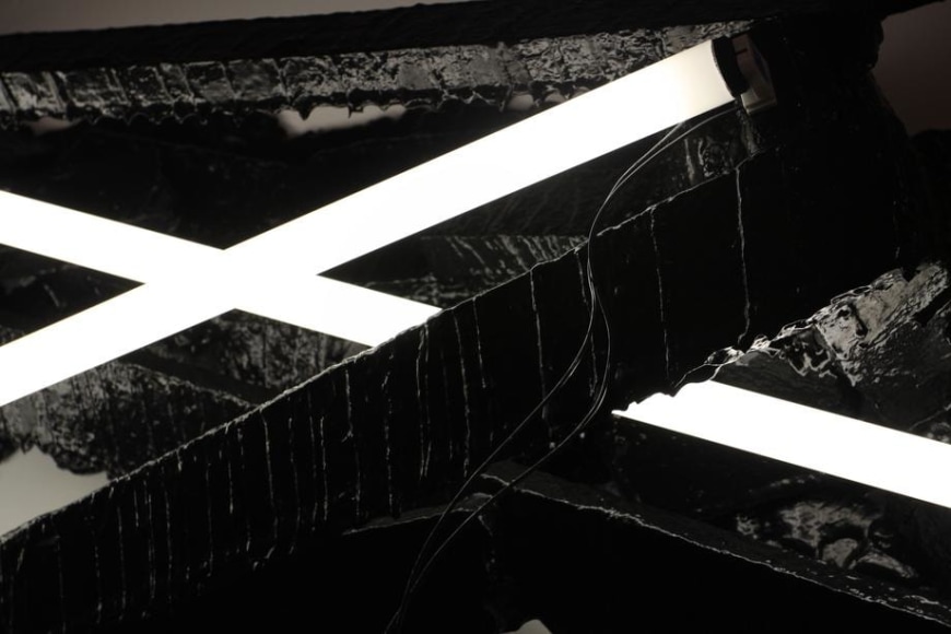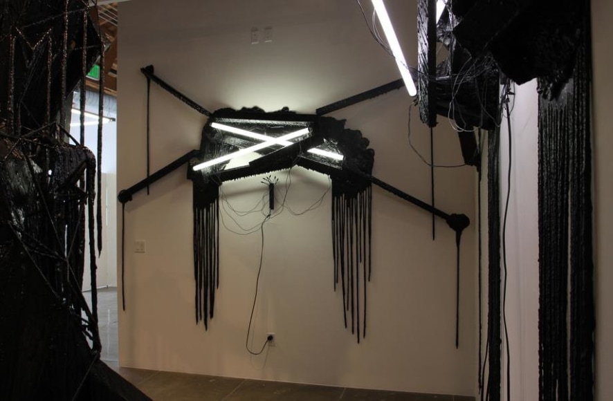 Mark Moore Gallery presents new work by interdisciplinary artist, Preston Daniels, in Gallery Two. Daniels produces works that demonstrate the humanization of architecture. In Over Under, Daniels continues to explore the gestures of architectural destruction and environmental collapse through a series of installations, paintings, and sculptures – all of which employ the use of acrylics, foam, urethane and fluorescent lighting. Over Under refers to a type of shotgun, commonly associated with hunting and sporting. Daniels uses the blunt reality and cultural trope of the shotgun to create an aesthetic bridge between human failures (such as natural disasters, nuclear destruction or war) and their imagined remnants in the form of structural ruins. His interest in taking apart the principals and fundamentals found in architecture - text, images, and structure- is translated in a crude, apocalyptic aftermath, replicating a nightmare where fantasy and reality are blurred.