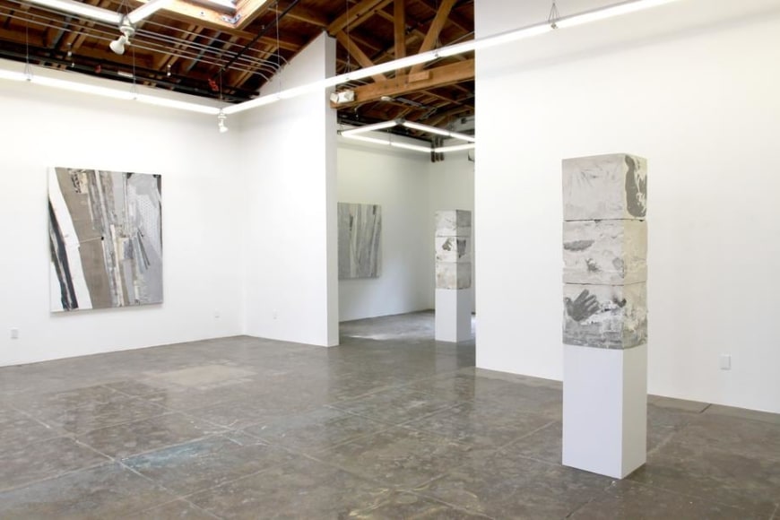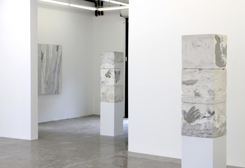 Similarly, the sculptural works (which Wallace will show in Los Angeles for the first time), are made of statuary hydrocal and concrete compounds, and are designed to exploit the material failure and disintegration of their respective materials. They are intentionally misused for the aesthetic qualities of their failure. In turn, the detritus from this process is frequently integrated into Wallace’s painting, further blurring the line between the two practices. “ I'm making sculpture to create underpainting. [The sculptures] are infused with the stuff of painting; forced and compressed into sculptural blocks rather that the sculpture being found and removed from within the block.”
