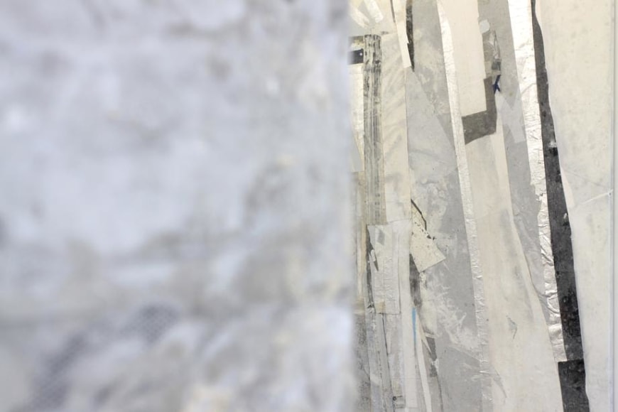 Wallace’s compositions embody a metaphysical dichotomy both on an aesthetic and conceptual level. Visually, his stratified abstractions are simultaneously evocative of both aerial and microscopic perspectives, yet they are assembled from recognizable “life size” elements of industrial materials. This duality of material quality is central to Wallace’s practice and is further evident in his methods of creation. By allowing compositions to evolve organically from the interplay of materials that have been cast off, removed, redacted from previous works, Wallace puts to practice the philosophical paradox of creation through removal, wherein the waste of one system becomes the structure of another.