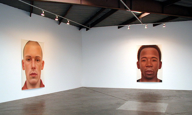Freiwald’s work occupies an odd space between realism and idealism. His images get to the heart of the issues surrounding contemporary portraiture, conflating the specificity of its practice–and its goal of revealing the depicted subject–with the widespread leveling conventions of photographic representation. Photography, as it appears in magazines and other media, is disposable, as are the images of the people depicted: we see many pictures of people each day, but rarely engage ourselves with the people we see. Freiwald’s images carve out an intimate and meditative space to explore and feel the power of the human image, but at the same time, they are oddly general, even alienating. The distancing of photographic representation is mirrored in Freiwald’s own practice: the artist works primarily from memory, mediating his images of his sitters with his own fleeting memories of them.