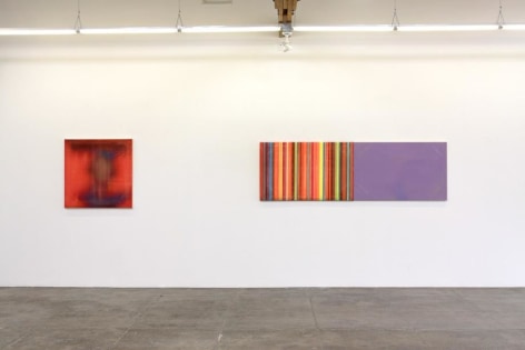 Drawn to the vibrant palette of his neon-lit hometown, Bavington is a master of richly saturated color and visceral execution. Utilizing pop and rock music as his source material, Bavington creates rhythmic visual systems by assigning colors to the musical arrangements. Guitar riffs become mathematically proportioned bars of paint, varying in widths and colors to represent audible shifts and durations. The result is a visual psychedelic mood ballad with colors undulating in atmospheric swells, at once evoking Bridget Riley and David Bowie. In a 2010 Los Angeles Times article, art critic David Pagel wrote, “Like pop songs, Bavingon’s abstractions waste no time in getting your attention. And like symphonies, they unfold slowly, with shifting tempos that lure memories into moment, filling it with infinite richness.” In his new body of work, the shimmering optical planes swirl dizzyingly while “I'm strollin' on, gonna make you see me” is called to mind.