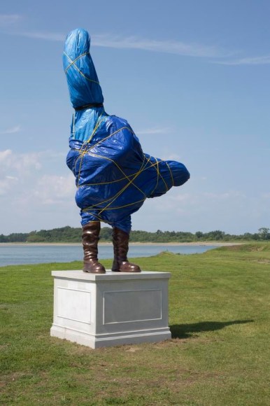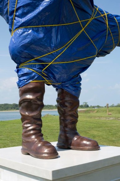 For their commission, Okay Mountain created Monument to a Decommissioned Monument (2015), in which they reflect on the way historic sites, and even history itself is repurposed. Responding to the revolving reincarnation of George’s Island, from military fort, to prison, to training grounds, to public park, Okay Mountain presents a shrouded heroic figure looking out toward Boston, suggesting a now-defunct past our possibly an as-yet-revealed future.